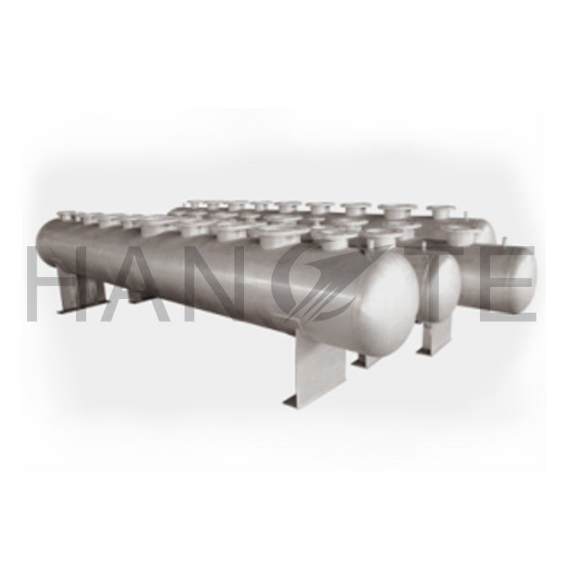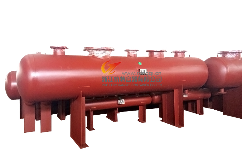 空调水系统,或其它的工业水系统中的,同样管理若干的支路管道,非标压力容器分别包括回水支路和供水支路,用钢板制作,属于压力容器类专业制造公司,其需要安装压力表温度计,自动排气阀,安全阀,放空阀等,2个容器之间需要安装压力调节阀,且需要有自动旁通管路辅助。